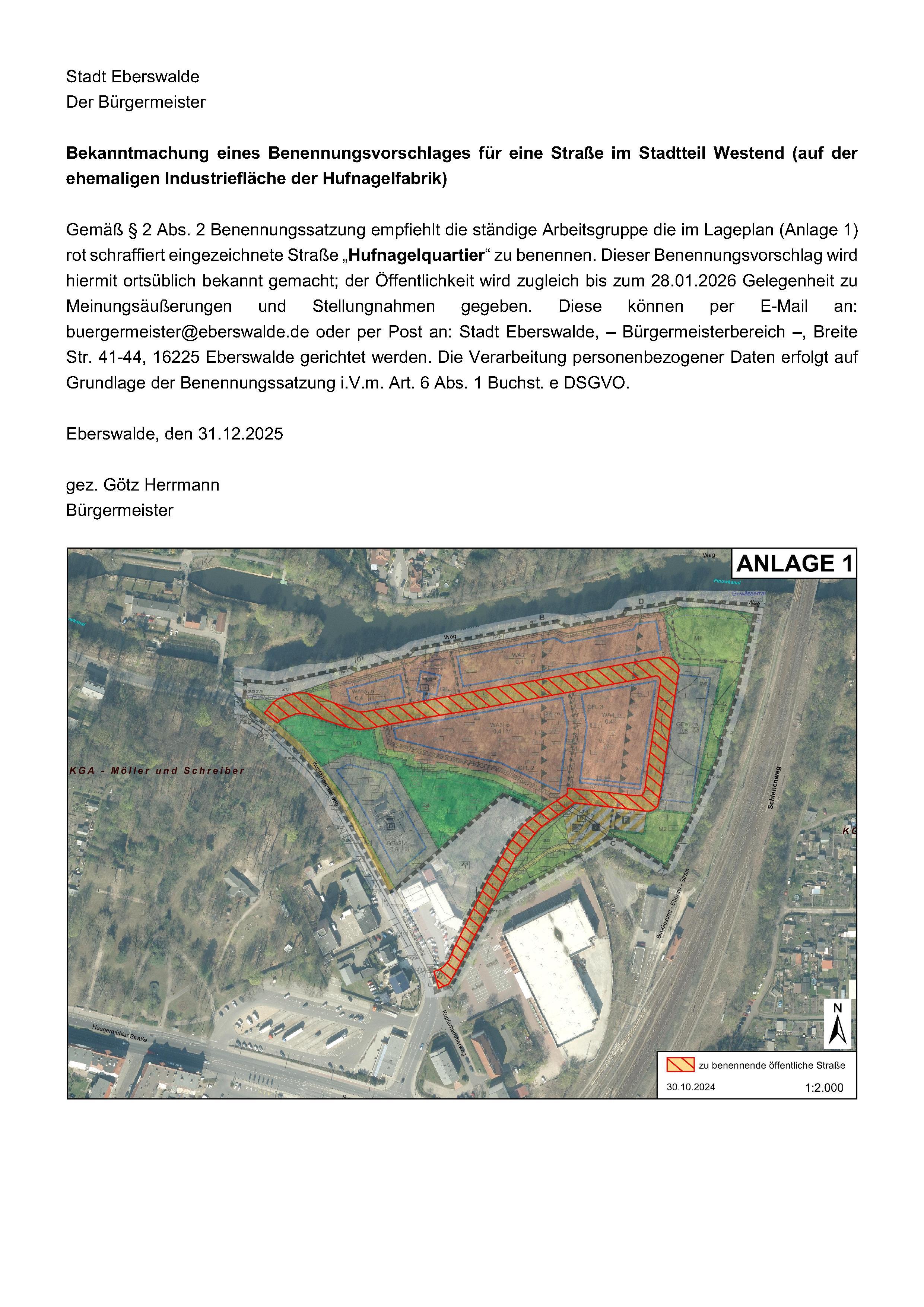 | 31.12.2025 | 20251231 1 Öffentliche Bekanntmachung Benennungsvorschlag Hufnagelquartier Internet | jpg - 1,016 MB | Download |