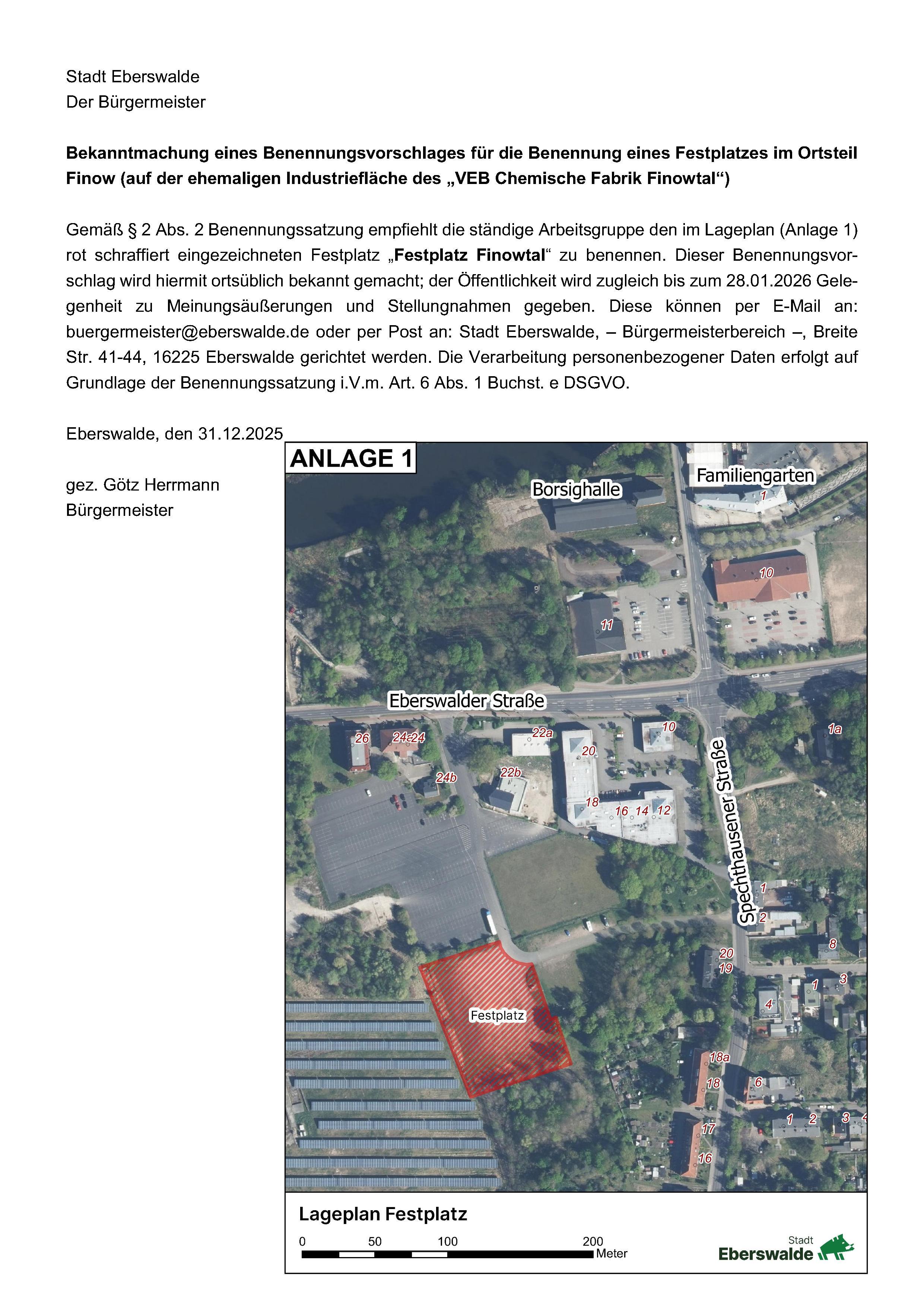 | 31.12.2025 | 20251231 3 Öffentliche Bekanntmachung Benennungsvorschlag Festplatz Finowtal Internet | jpg - 901,679 KB | Download |